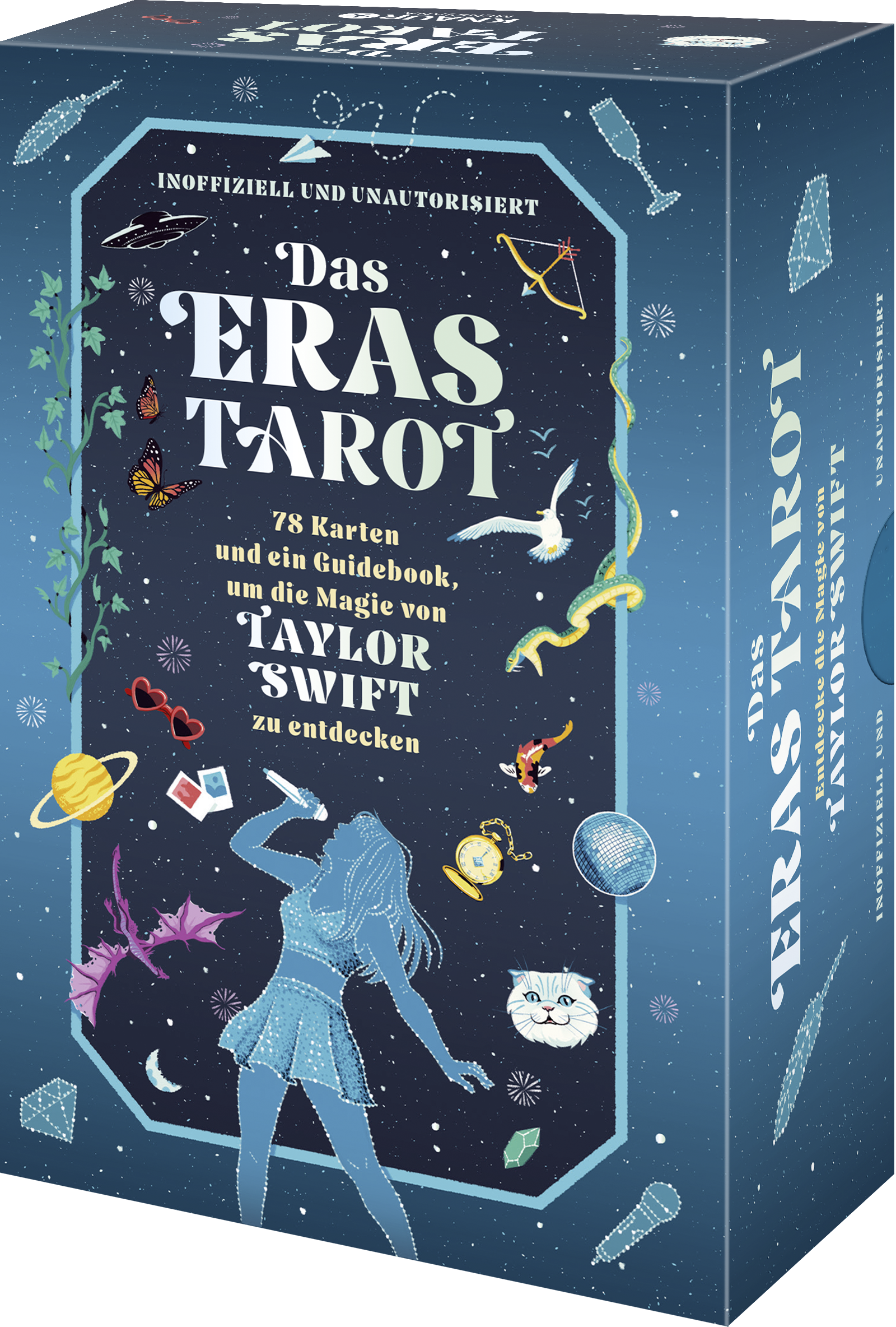 Taylor Swift gehört zu den erfolgreichsten und einflussreichsten Musikerinnen aller Zeiten. Im Laufe ihrer musikalischen Karriere hat sie eine reiche Mythologie geschaffen, mit unzähligen Symbolen und versteckten Hinweisen, die ihre Songtexte, ihr Erscheinungsbild, ihre Musikvideos, Auftritte und die Kommunikation mit den Swifties verbinden. Das Eras-Tarot interpretiert diese Easter Eggs im Rahmen der 78 Tarotkarten der Rider-Waite-Smith-Tradition und stellt die klassische Tarotkunst durch die Linse des Taylor-Universums auf wunderschöne Weise neu dar: Jede Karte ist mit Symbolen aus ihren Texten und ihrem Leben illustriert – von ihrem Debütalbum bis hin zu »The Tortured Poets Department«.